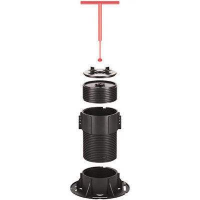Grâce à notre clé de réglage exclusive — un composant essentiel du système — il est possible d’ajuster la hauteur des plots, et donc du plancher surélevé, même une fois le revêtement posé, sans avoir à le démonter ou le soulever.